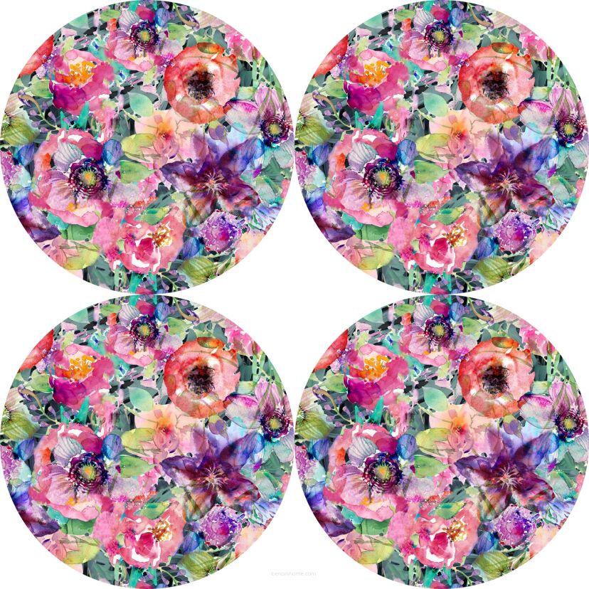 4. Zestaw 4 podkładek okrągłych na stół 4D 33 cm – FLORA | Ekologiczny filc, nadruk HD, pranie 40 °C, Bertoni