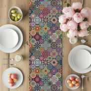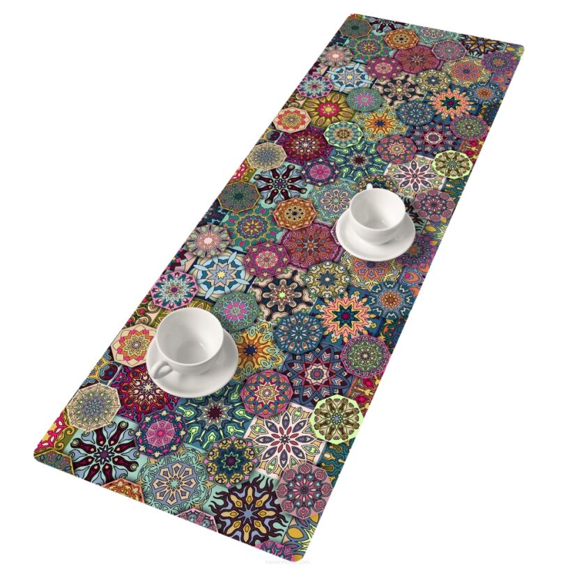 Dzięki dekoracyjnemu nadrukowi bieżnik stanowi stylowy element aranżacji, a jednocześnie chroni powierzchnię stołu przed zarysowaniami, ciepłem i zabrudzeniami.